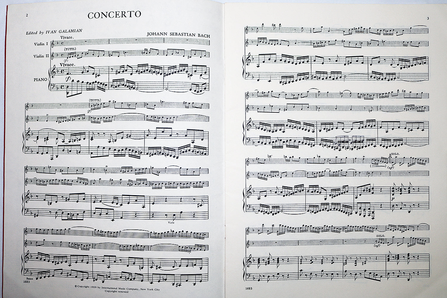 Concerto in D Minor for two violins and piano by J.S. Bach.