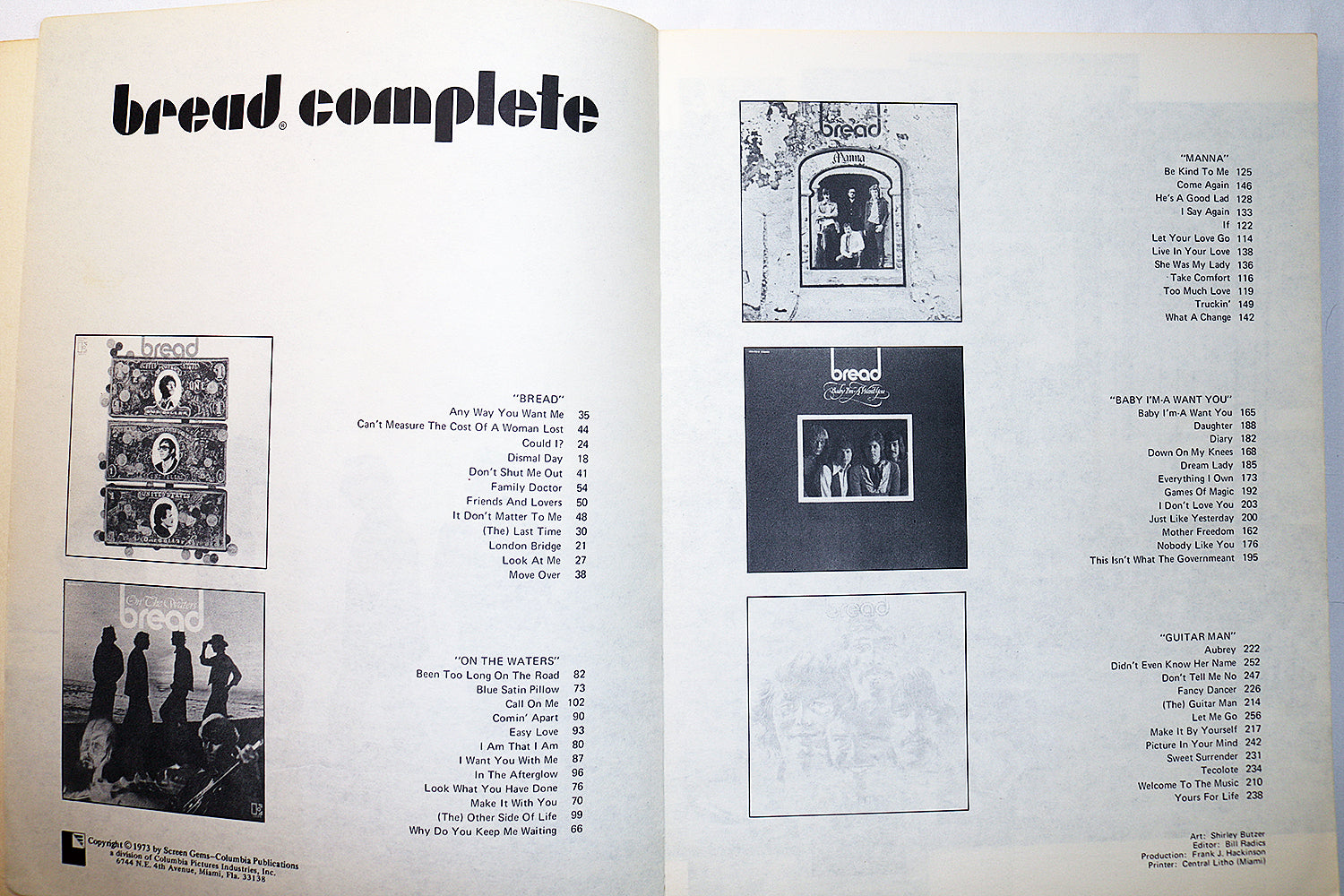 Everything ever recorded by Bread in piano-vocal-guitar format.