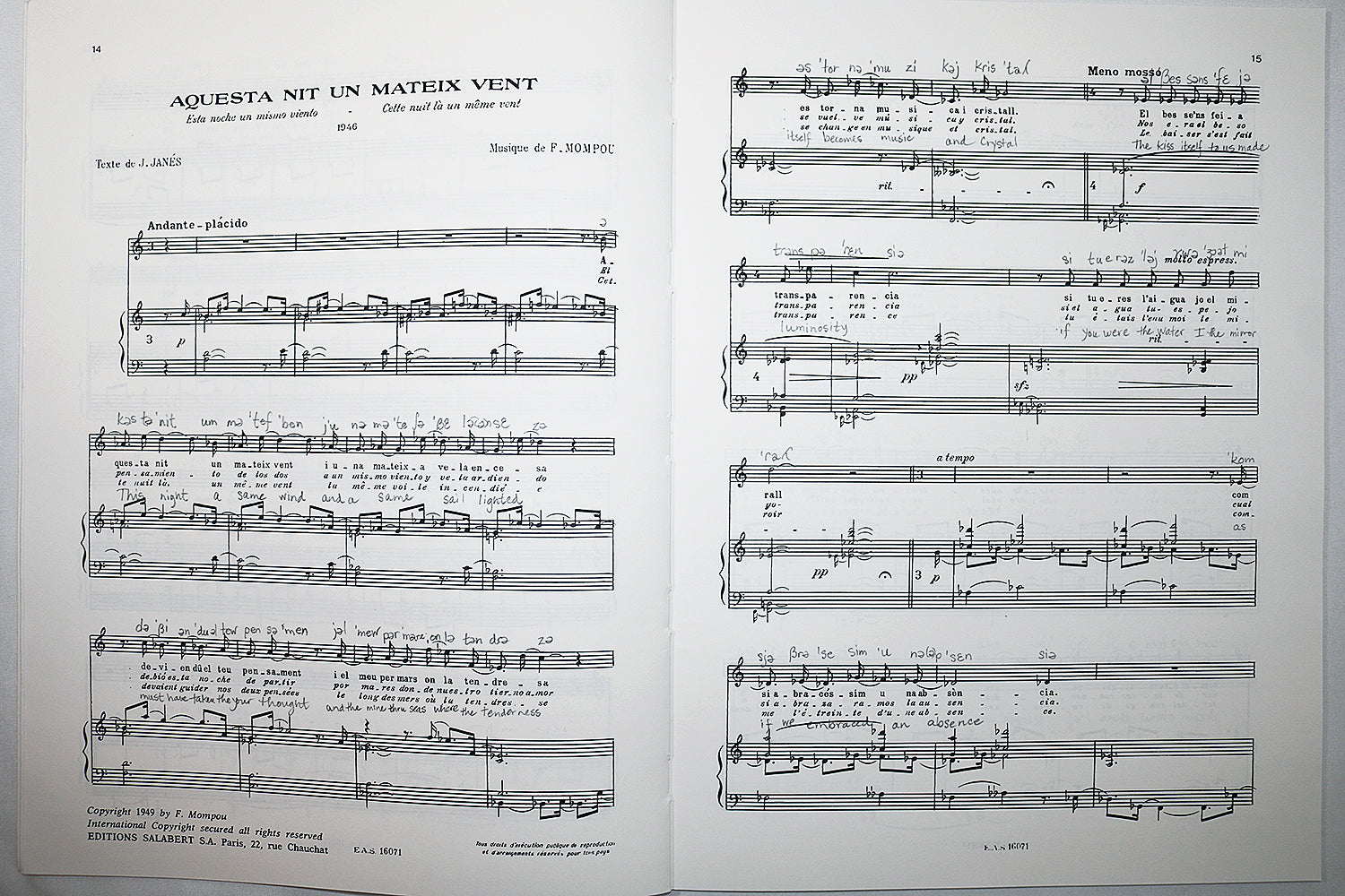 Federico Mompou’s Mélodies et chansons collection conveys his intimate, miniature style—“haunting intimacy” in which songs “seem to float” above “bell-like sounds of the piano,” creating a peaceful, songlike atmosphere. The collection’s lyricism and delicate beauty evoke a salon-style intimacy reminiscent of Poulenc.