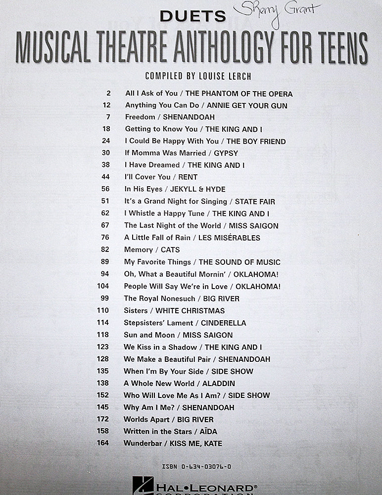 This anthology provides over 30 songs from stage and film, arranged for teen performers with both solos and duets included. A versatile volume for youth-theatre singers, private-studio students and choral programs seeking broad repertoire at an appropriate level.