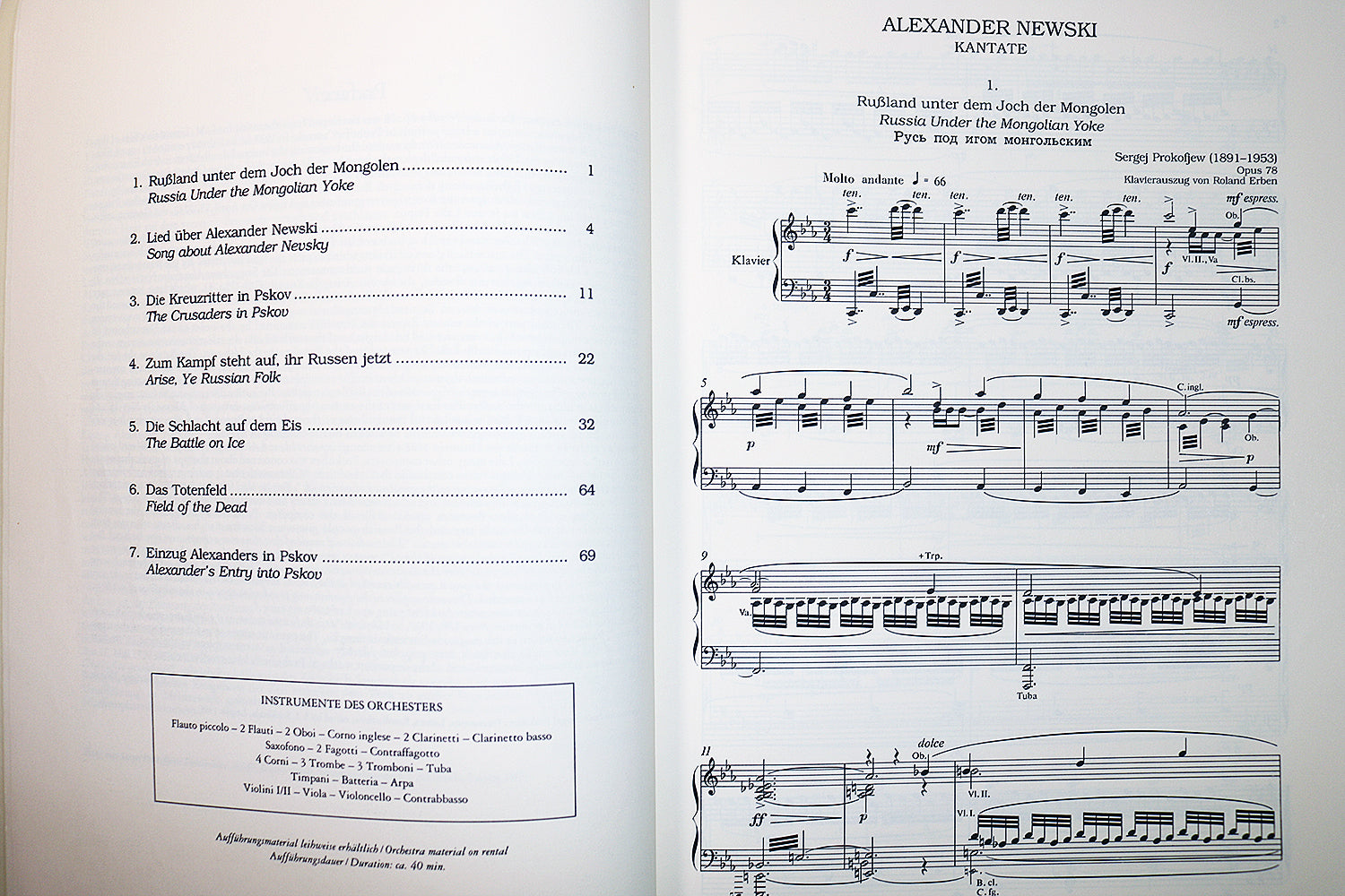 The vocal score of Alexander Nevski, Op. 78 lays out Prokofiev’s powerful cantata — drawn from his famed film score — for chorus, soloist and piano reduction. It is ideal for concert choirs seeking a dramatic, historically rich work with haunting Russian atmosphere. Text in English, German and Russian.