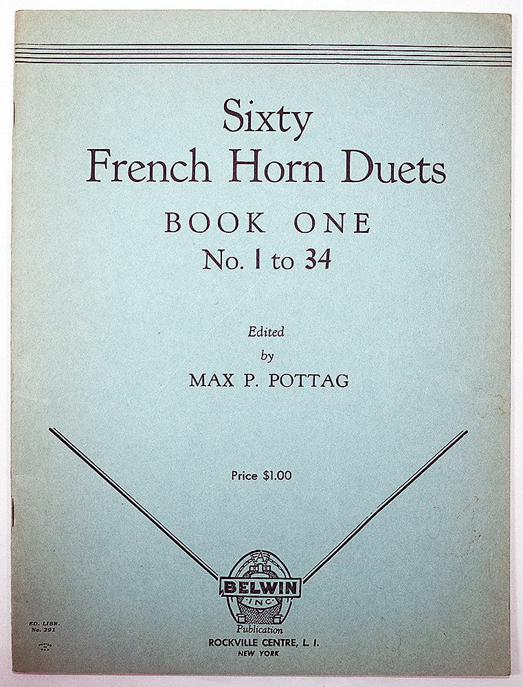 In Sixty French Horn Duets Book One (Nos. 1–34), Pottag curates a progressive set of duets crafted for horn players seeking ensemble practice and musicality development. This Belwin edition features clear notation and accessible pairing of parts aimed at improving phrasing and intonation. The listing notes that Book One “contains No. 1 to 34” and is ideal for teacher-student duet work.