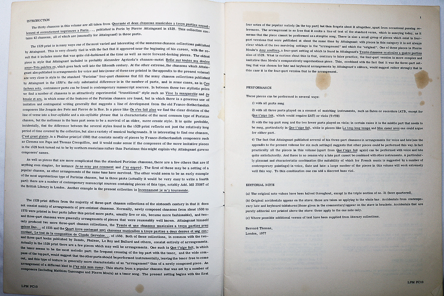 Thirty Chansons, 1529, for Three Instruments or Voices